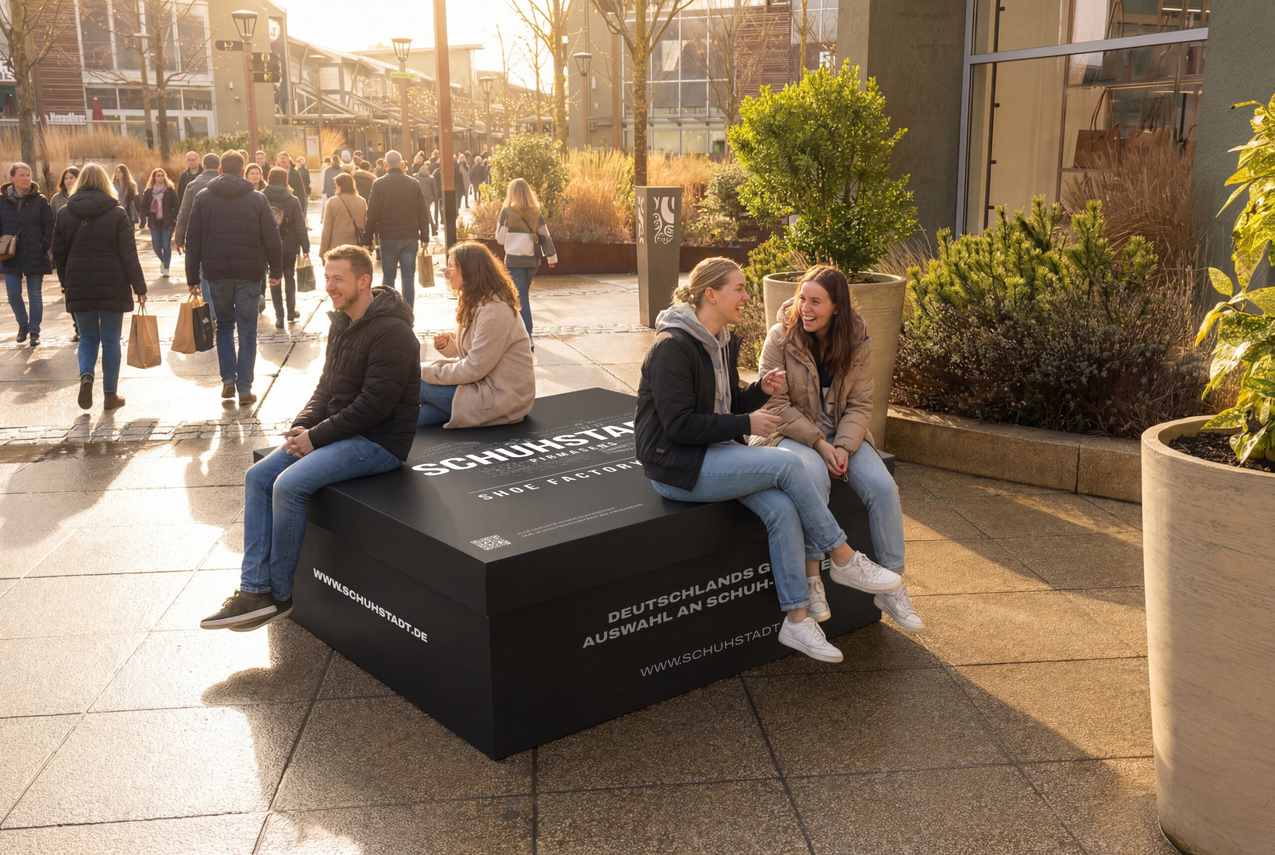 Zum Start der Kooperation rückt die Schuhstadt im Fashion Outlet prominent in den Blick: Ein großformatiges Billboard sowie Sitzbänke in Form überdimensionaler Schuhkartons setzen sichtbare Akzente. Im Gegenzug wird in den Pirmasenser Schuh-Outlets auf das Zweibrücken Fashion Outlet hingewiesen und dem Center anlässlich seines 25-jährigen Bestehens gratuliert. Weitere gemeinsame Aktionen in den sozialen Medien sowie ergänzende Marketingmaßnahmen sind bereits geplant.